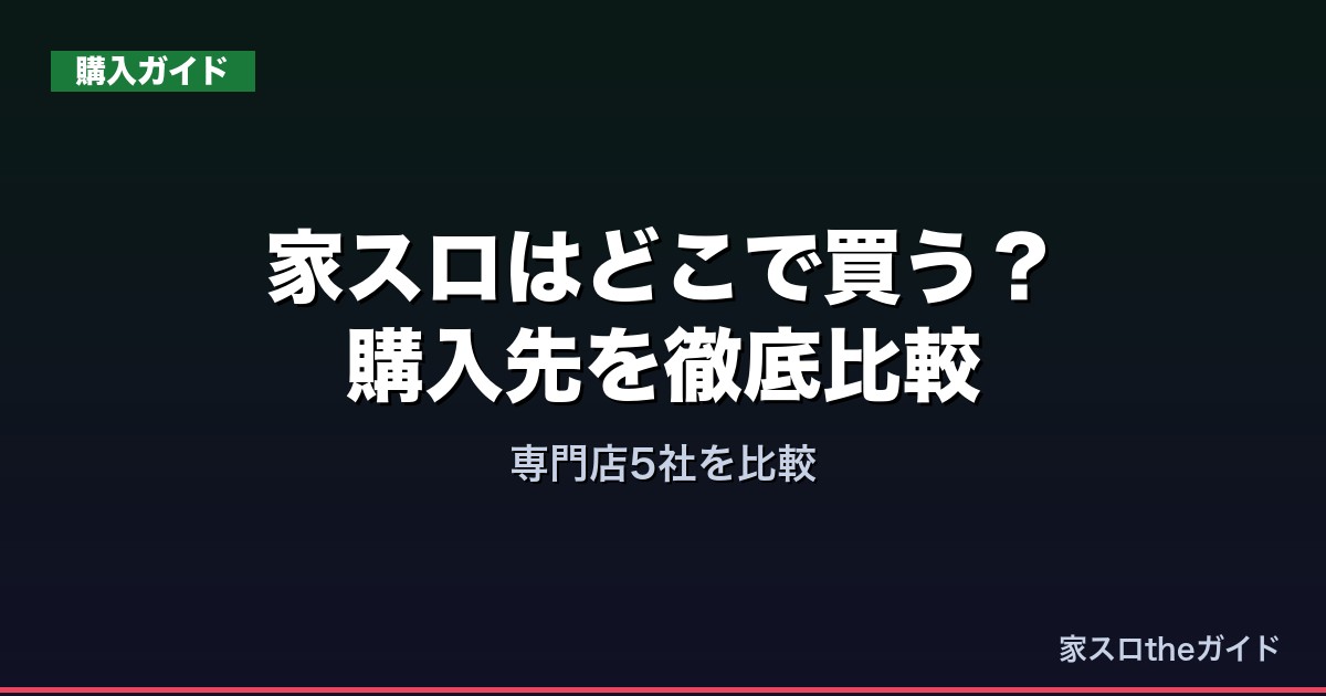 家スロの購入先は「専門通販サイト」「フリマ・オークション」「実店舗」の3タイプがあり、それぞれ一長一短があります。初心者には専門通販サイトが圧倒的におすすめで、中でもA-SLOTは品揃え・オプション・サポートのすべてが高水準です。コイン不要機が標準付属する江戸スロや家スロ王国も、手間なく始めたい方に向いています。